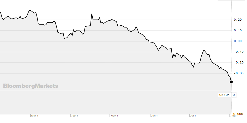 Eind mei schoot de rente op Nederlandse staatsobligatie onder het nulpunt. Na een korte opleving halverwege juli zette de dalende lijn door. Inmiddels staat de teller al op -0,38 procent. De daling zet de trend voor de richting van de hypotheekrente. In de afgelopen week verlaagden diverse geldverstrekkers de rente op hypotheken, waaronder ABN Amro en ING. De verwachting is dat meer aanbieders volgen.